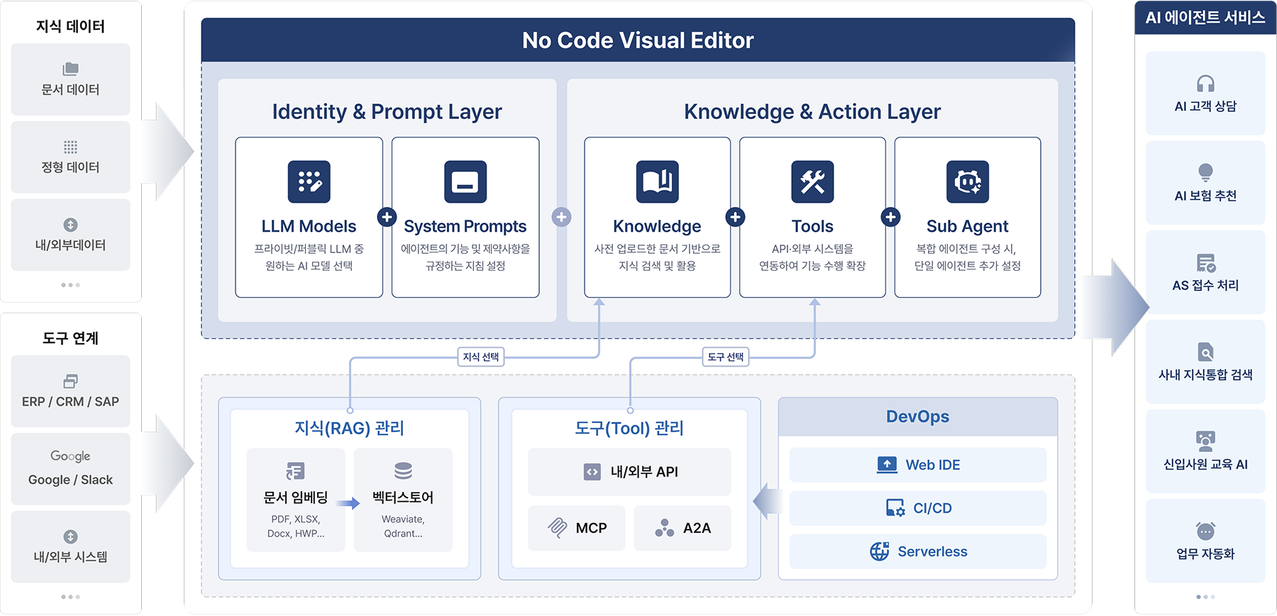 비개발자도 손쉽게 RAG와 에이전트를 생성할 수 있습니다.