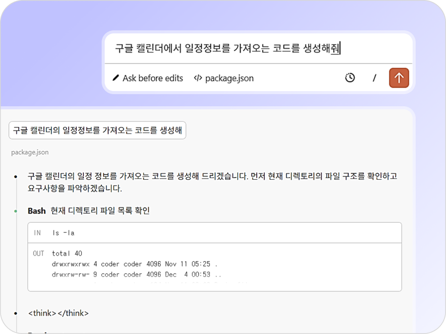 또한 AI 코드 어시스턴트가 내장되어 있어 대화 기반으로 원하는 기능을 쉽고 빠르게 구현할 수 있습니다.