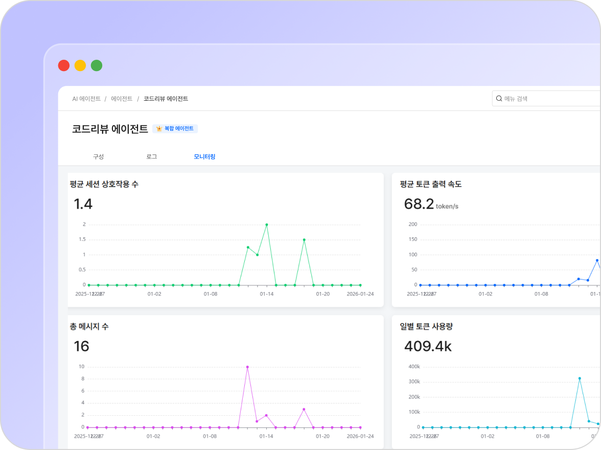에이전트 대화 이력, 성능 등 실시간 모니터링과