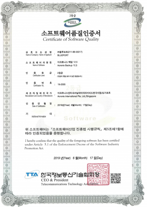 아크로니스 소프트웨어 인증서
