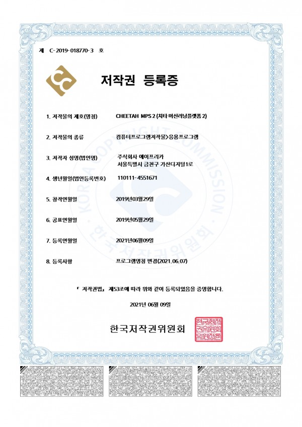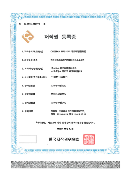 저작권등록증_CHEETAH(머신러닝플랫폼)