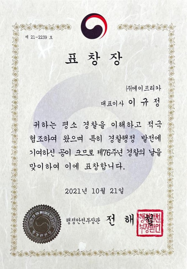 행정안전부 표창장