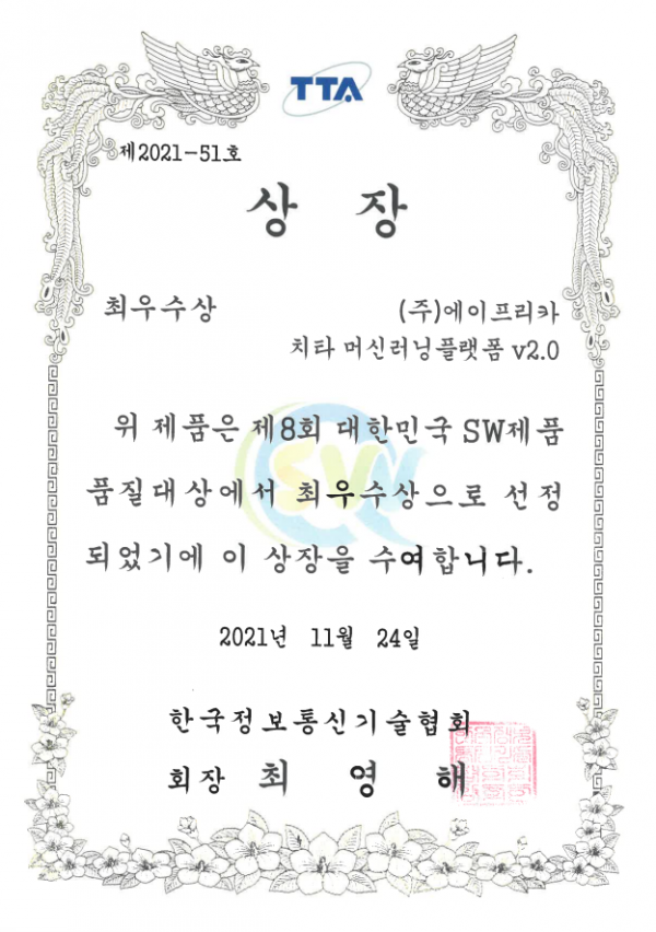 대한민국 SW제품 품질대상 최우수상