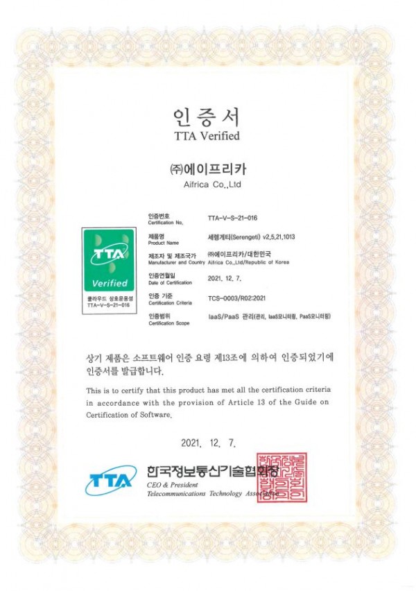 클라우드 상호운용성 인증서 – 세렝게티