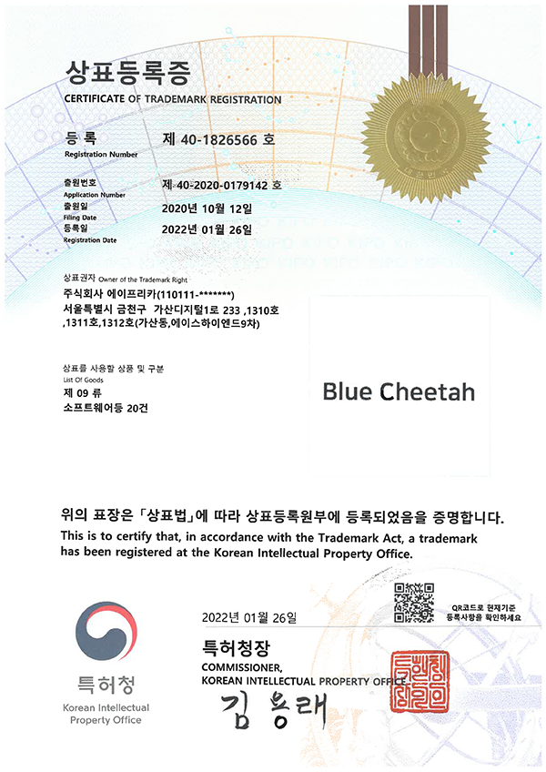 상표등록증_Blue Cheetah