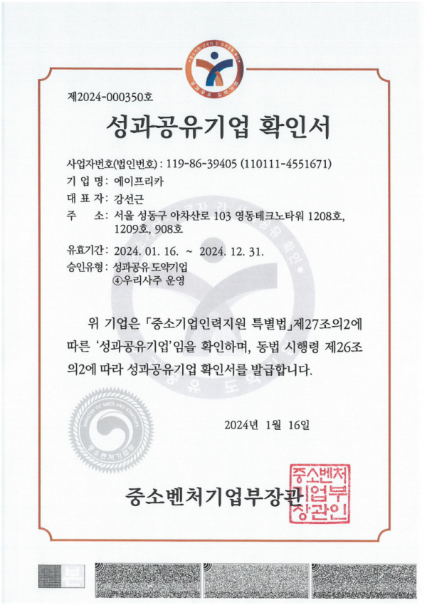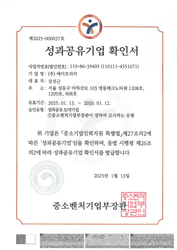 성과공유기업 확인서