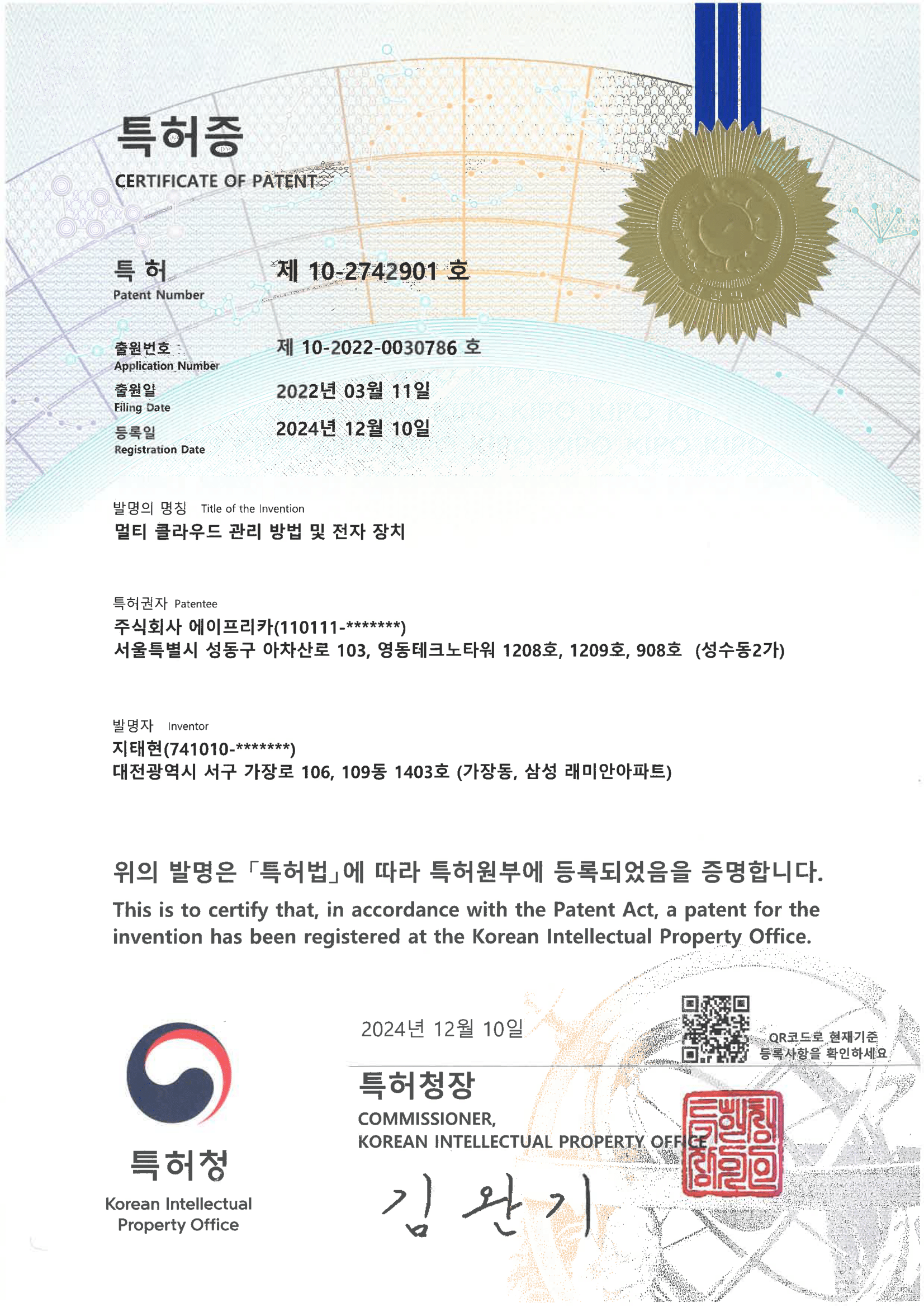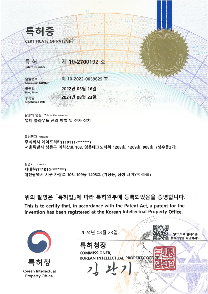 에이프리카 상표등록증 제42류
