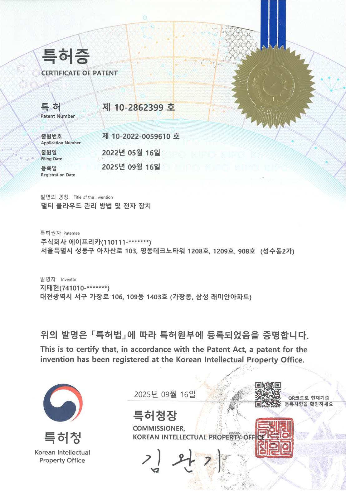 에이프리카 상표등록증 제09류