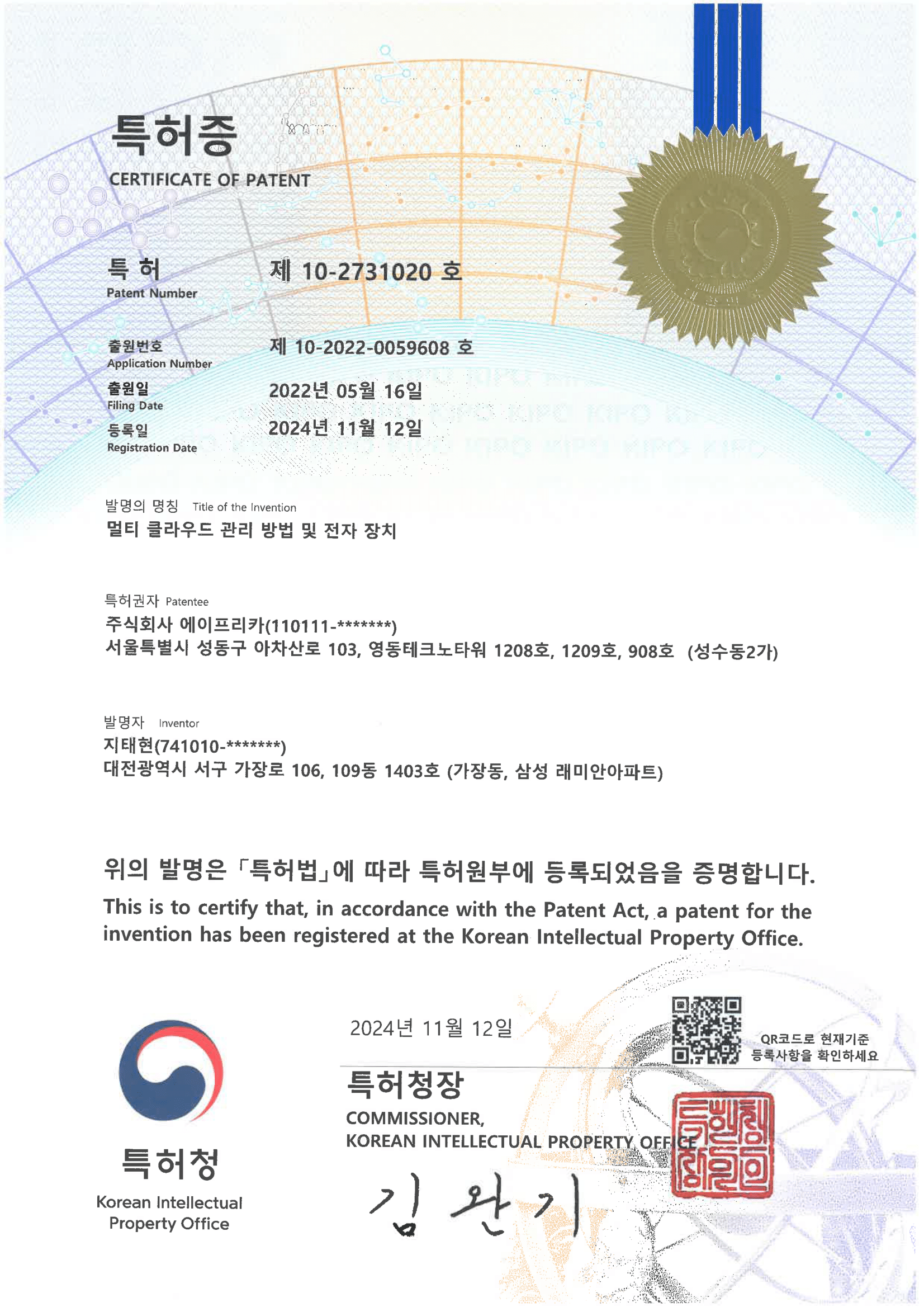 상표등록증 42류_1655574