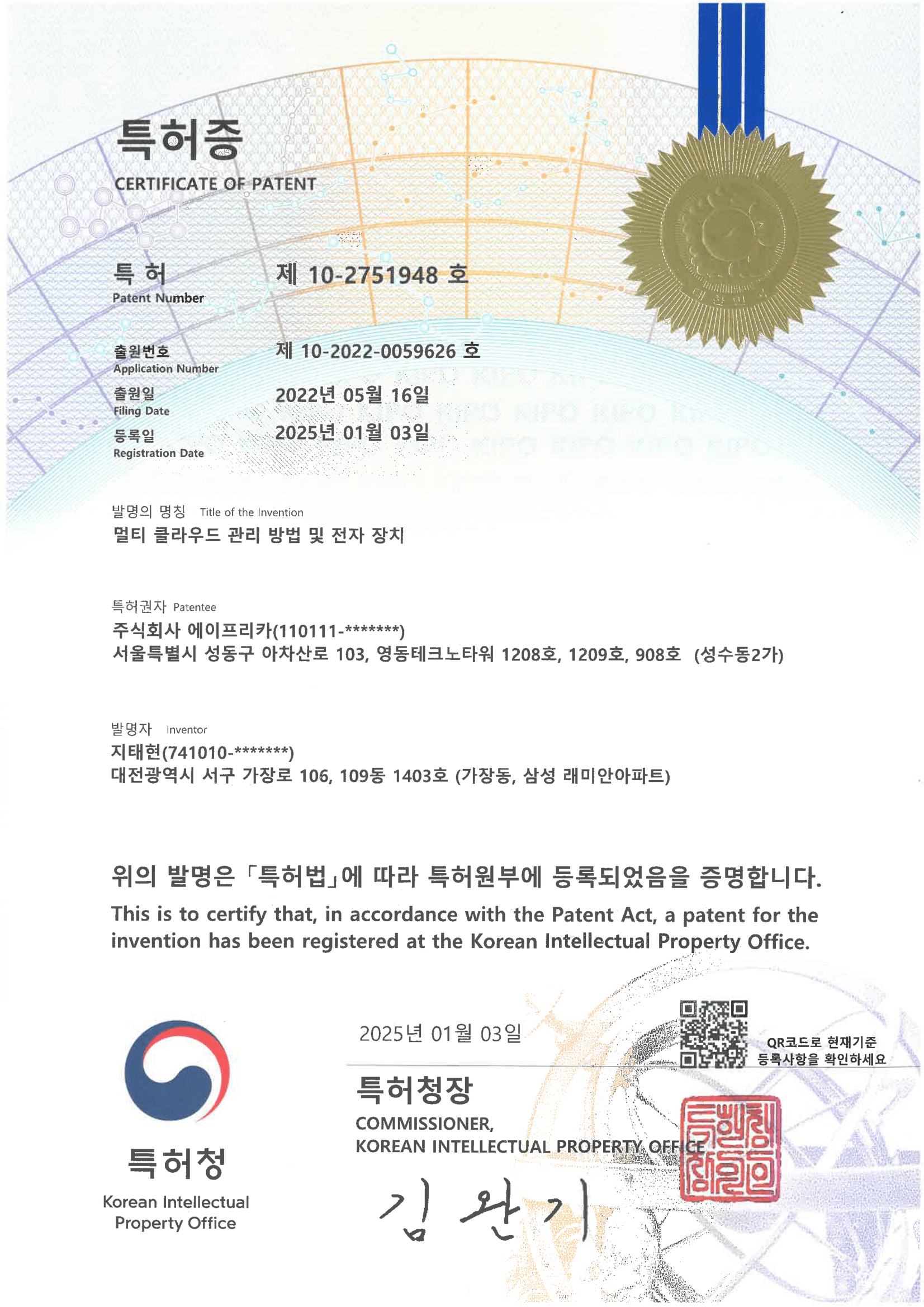 조달청 우수제품지정증서(영문)