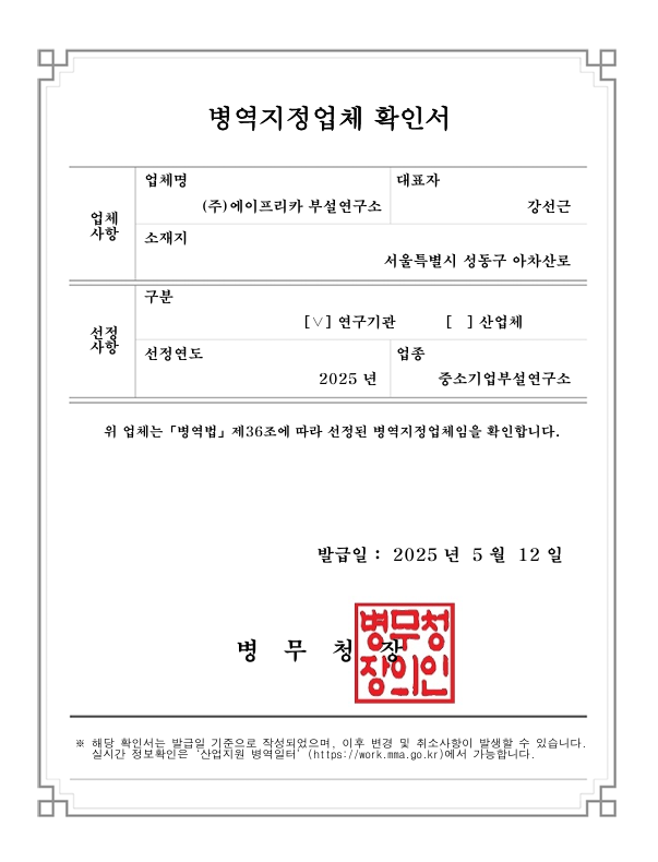 병역지정업체 확인서