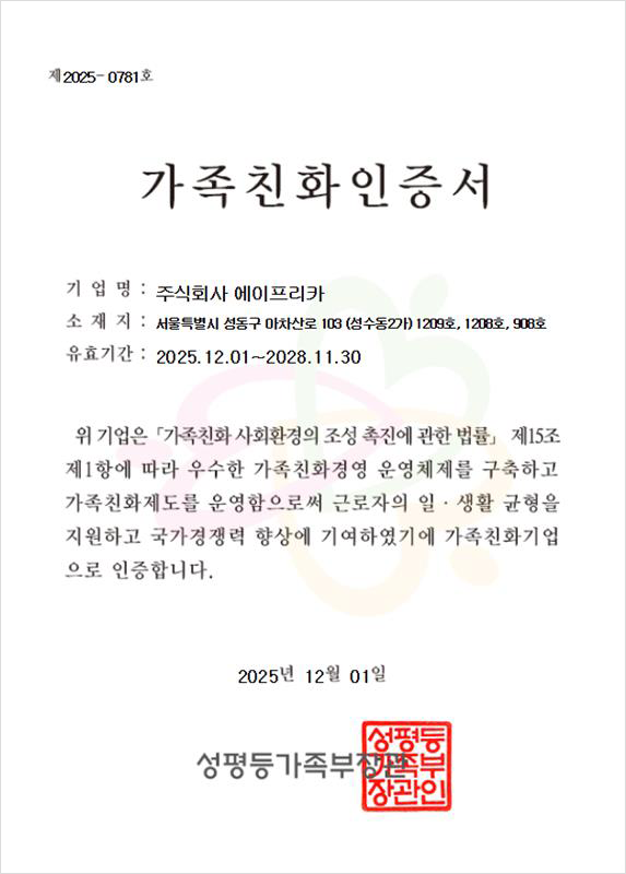가족친화인증서