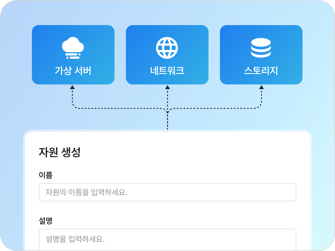 가상 서버, 네트워크, 스토리지 자원을 손쉽게 생성하고,