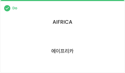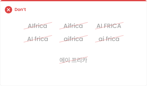 Brand Name in Copy 에이프리카로 커뮤니케이션 시, 혼동을 최소화하기 위하여 다음의 명칭 표기 규정을 준수하도록 합니다.