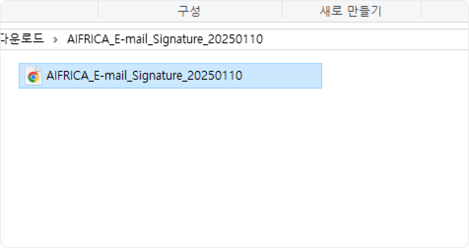- 1. 이메일 서명 다운로드 후 브라우저에서 실행 상단 버튼을 눌러 이메일 서명을 다운받고 브라우저에서 실행합니다.