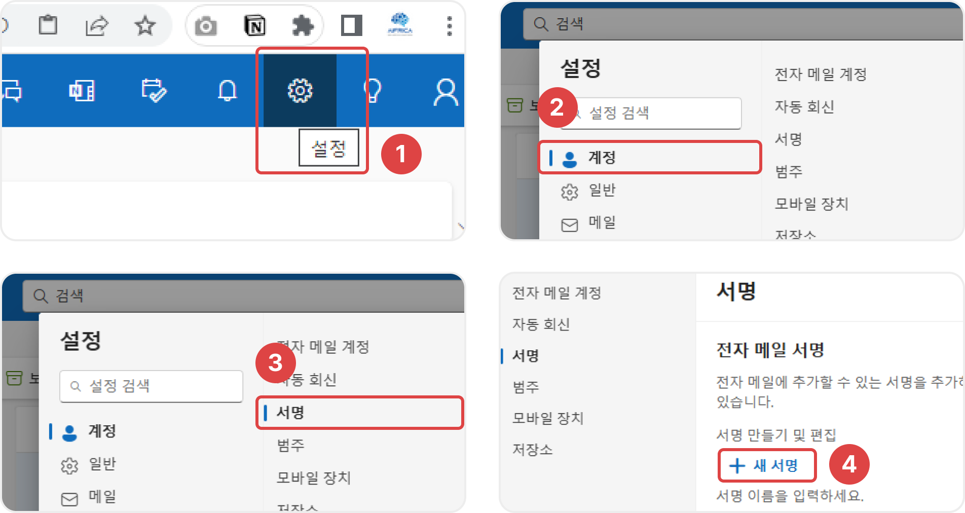 3. Outlook에서 새 서명 만들기